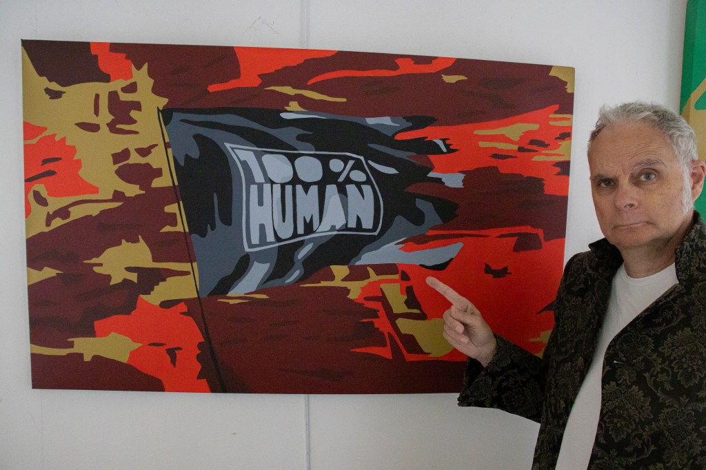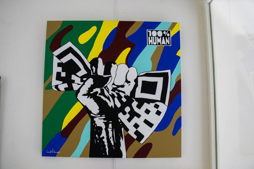 Le nom de l’exposition, 100% Humain, évoque pour le peintre le principe d’imperfection qui est propre à l’humanité, qui nous distingue de la machine. « Je tiens à ce que l’on voit qu’il reste des imperfections. Si l’on veut une oeuvre parfaite, on l’imprime. Il faut rester humain malgré tout, le risque de se faire doubler par la technologie est véritable. » nous met-il en garde.